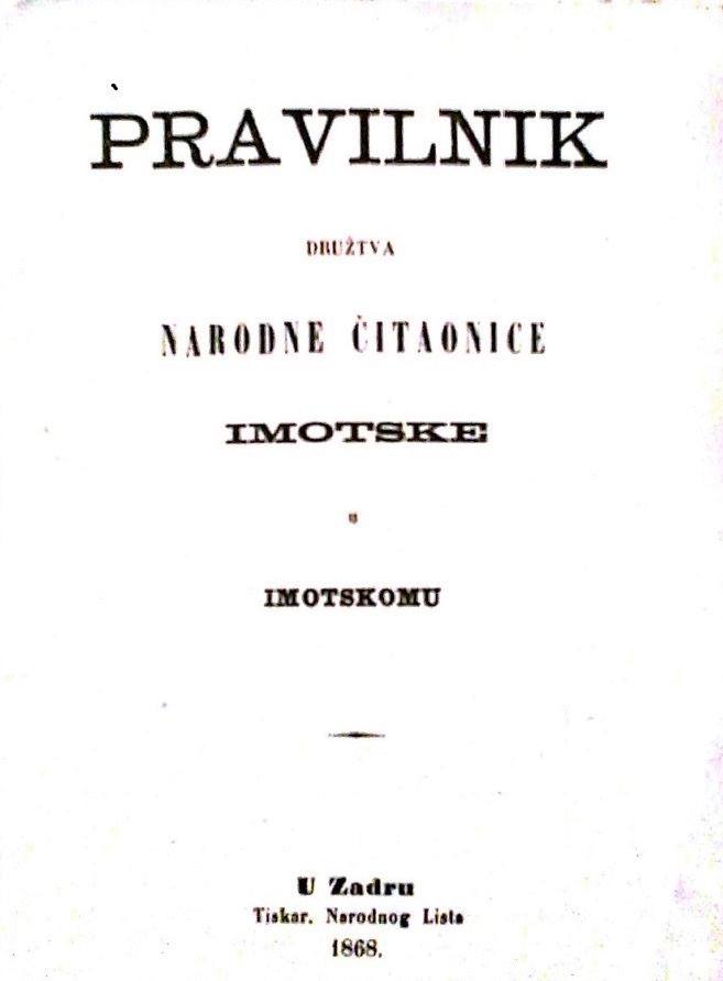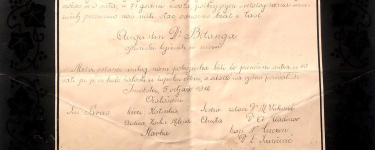 Izvor: Obiteljska arhiva, Nakladnik „Hrvatska tiskara-Šibenik“, knjižica „Imotskim … krajišnicim“ izdana je uoči izbora 1908. godine u Vinjanim Gornjim.