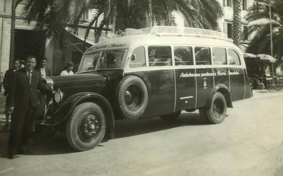 Autobus za Imotski parkiran na splitskoj Rivi sredinom 1930-ih. Svakodnevna autobusna pruga Split – Imotski – Široki Brijeg – Mostar uspostavila se 1930 godine, a određeno vrijeme imotski privatni poduzetnici braća Dinko i Miljenko Borić vlasnici “Autobusnog poduzeća Borić-Imotski” dobivaju koncesije za liniju Split-Imotski, te od 24.07.1930. godine za liniju Split-Imotski-Široki Brijeg-Mostar.