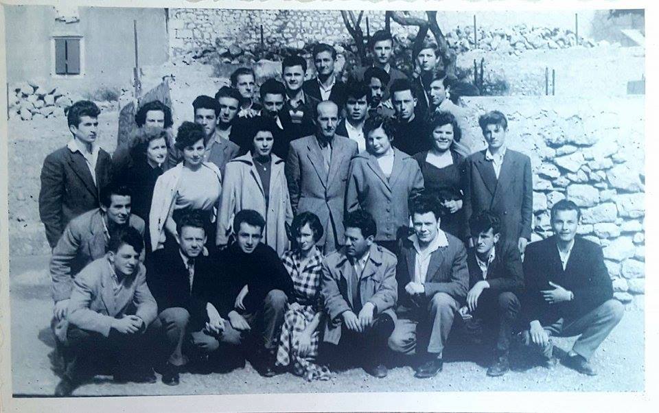 Maturanti imotske Gimnazije prije 60 godina, u lipnju 1957. godine. Od donjeg reda pa naviše s lijeva: