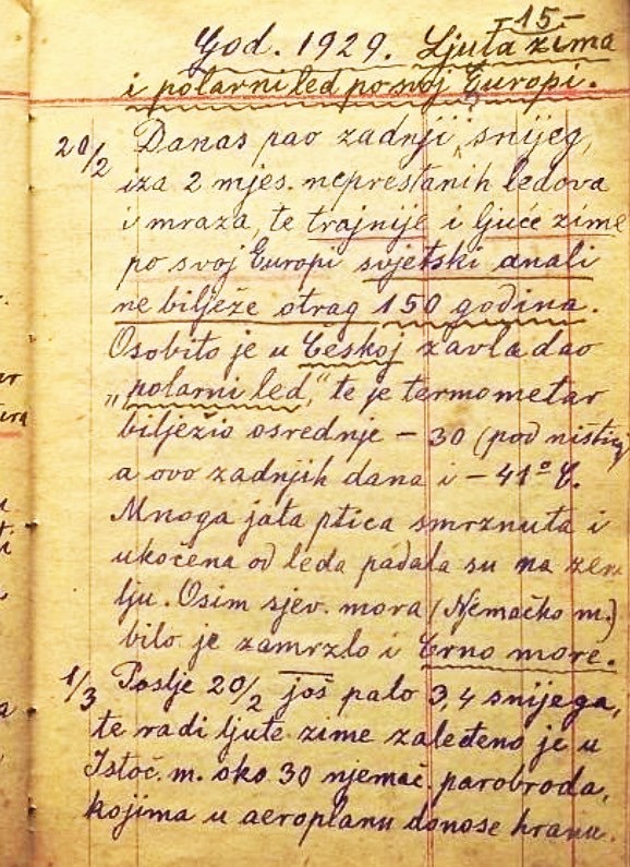 Posljednjih godina u ovo doba naviknuli smo se na relativno blago i toplo vrijeme te nas je krajem ožujka 2026. godine iznenadio povratak zime koji je donio i povratak hladnoće, obilne kiše i snijeg. Prisjetimo se stoga zime 1929. godine koja je zahvatila naše krajeve i cijelu Europu. Ta strašna zima dobila je epitet „zima 20. stoljeća“.