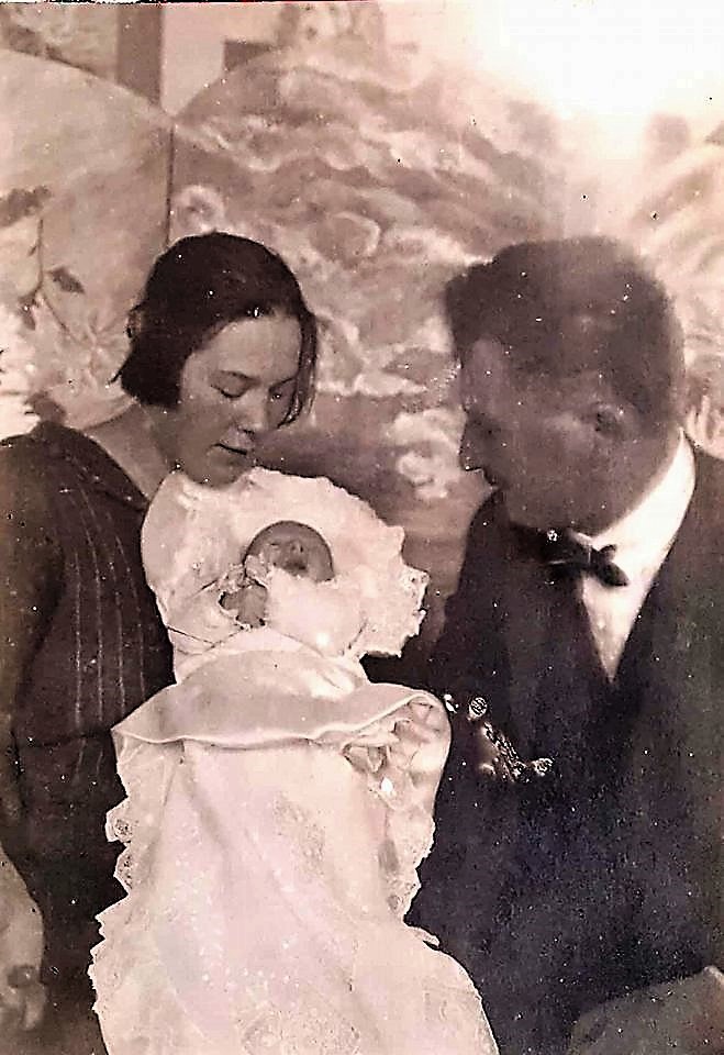 Marija pl. Franceschi (1898.-1968.) i dr Pavao Radovinović (1893.-1985.) vjenčali su se 15. studenog 1923. godine u crkvi Uznesenja Blažene Djevice Marije na Durmiševcu. Fotografija mladog para Radovinović sa jednomjesečnim sinom Augustinom Jagom snimljena je na prvu godišnjicu braka, 16. studenog 1924. godine u obiteljskoj kući u Imotskom.