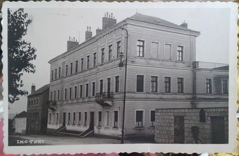 Imotski, Pučka i Građanska škola krajem 1920-ih godina. Na školskoj zgradi, koja je blagoslovljena na sv. Franu 1911. godine, velikim zlatnim slovima pisalo je “Pučka građanska škola”. Ulazilo se s ulice na dvoja vrata. Iznad južnih pisalo je zlatnim slovima “Ženska pučka škola”, a na sjevernim “Muška pučka škola”. Ispred zgrade se vidi stup javne rasvjete tzv petromaks. Izdavač: Julija ud. Ivanović, Imotski.